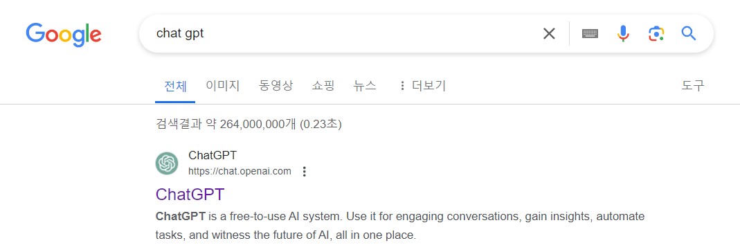 먼저 구글 검색창에 ChatGPT 를 검색하여, ChatGPT 홈페이지에 접속해 줍니다.